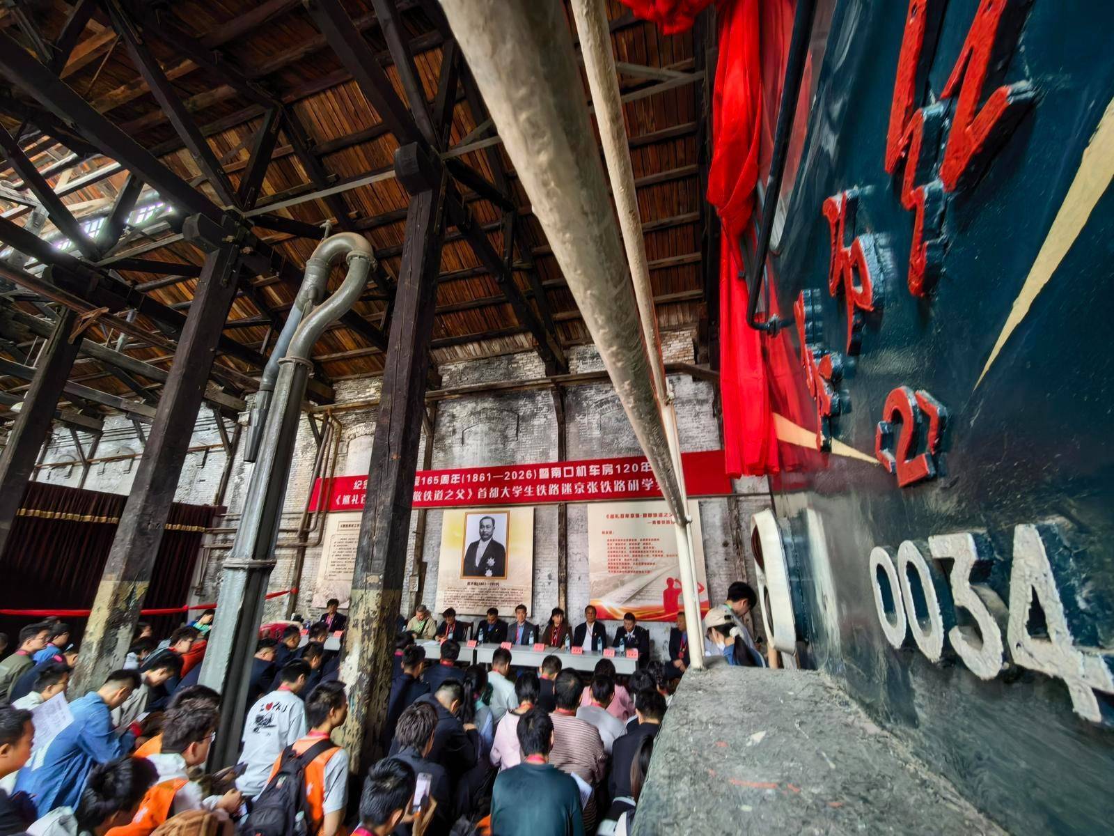中国青年报客户端讯(陈图南 崔轩豪 中青报·中青网记者 陈思阳)近日,由中国收藏家协会铁路文化专业委员会和中国铁路北京局集团怀北机务段团委联合主办的首都高校 “交通强国・青春党课” 研学实践活动在北京南口机车房、青龙桥火车站举行。活动恰逢中国铁路之父詹天佑诞辰165周年,也是原京张铁路南口机务段建成120周年。来自首都近30所高校的百名大学生、铁路青年职工与特邀嘉宾齐聚一堂,以实地研学、现场宣讲、经典诵读等形式,共赴京张之约,在青春党课中解锁百年京张精神密码,让交通强国的信念扎根青年心底。