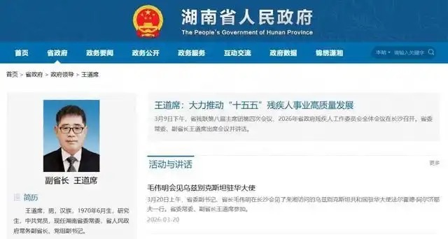 2025年11月,王道席出任湖南省委常委,并担任副省长,直至此番明确为常务副省长。